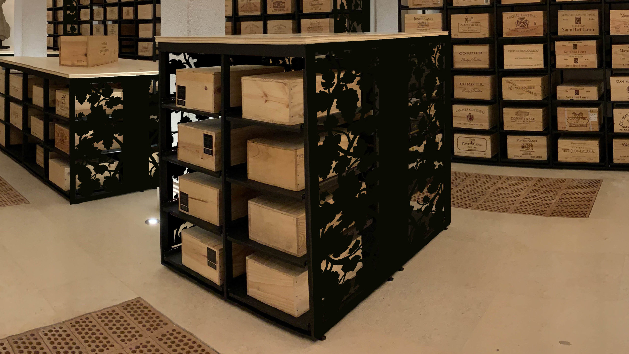 Créer une véritable cave à vin chez vous grâce à notre système d’étagères et de tiroirs.